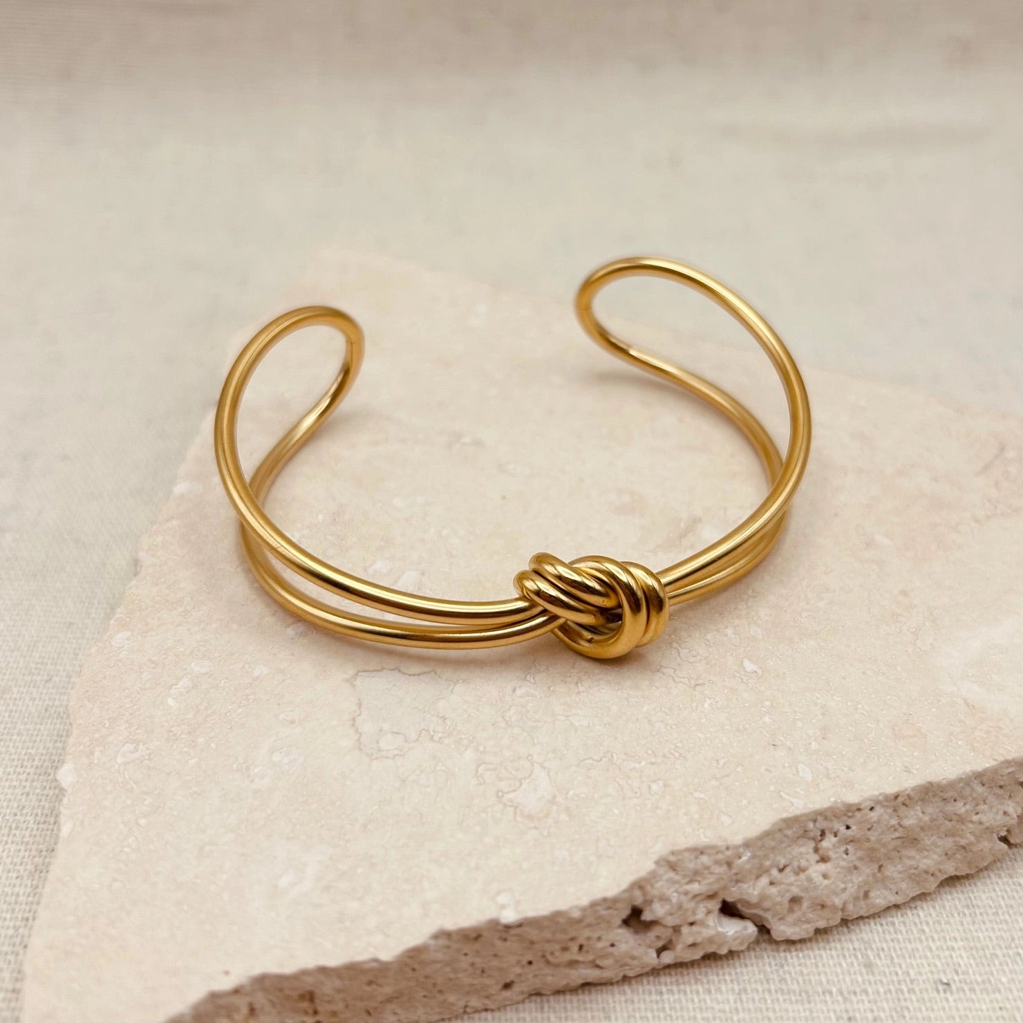 Elevate your everyday style with the Everyday Gold Knot Bangle. This adjustable piece is designed to stay with you season after season, ensuring enduring elegance through every occasion. Its subtle knot detail adds a refined touch, making it a versatile accessory that complements any ensemble with sophistication.