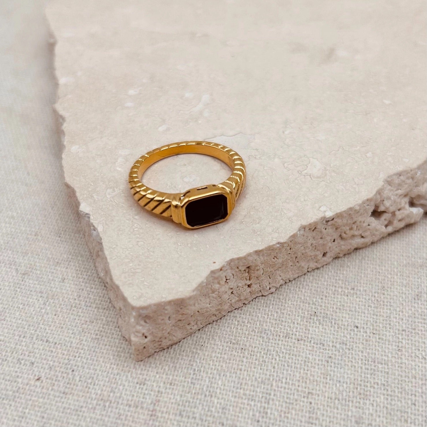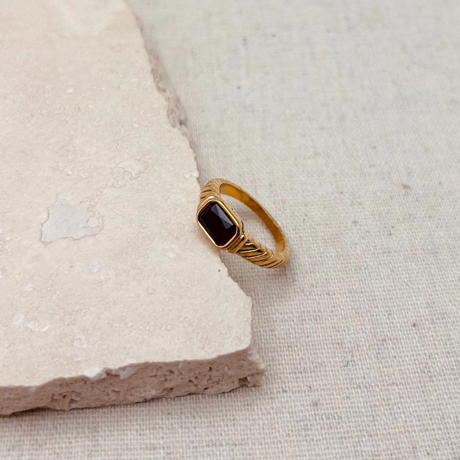 Vintage inspired ring with an octagon-cut noir stone, perfect for adding some subtle glam to your look.